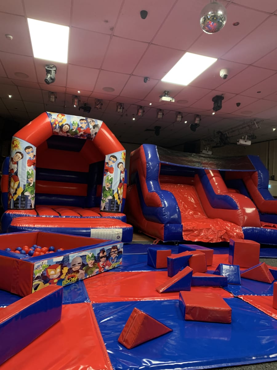 Don’t we all love a Superhero? Then make your Superheroes dreams come true with this Amazing Superheroes Themed Super Size Soft Play package ! Perfect for their Birthday celebrations which includes our amazing Bouncy Castle, Mini Slide, Soft Play + Mega Mat set up and Matching Foam Ball Pool ! This Superheroes Themed bouncy castle and Mini Slide Package is ideal for all your indoor and outdoor events and special occasions. , it’s the perfect choice for the under 5's to build, play and roll in a safe environment Bringing your children the most fun and entertaining party of the year!