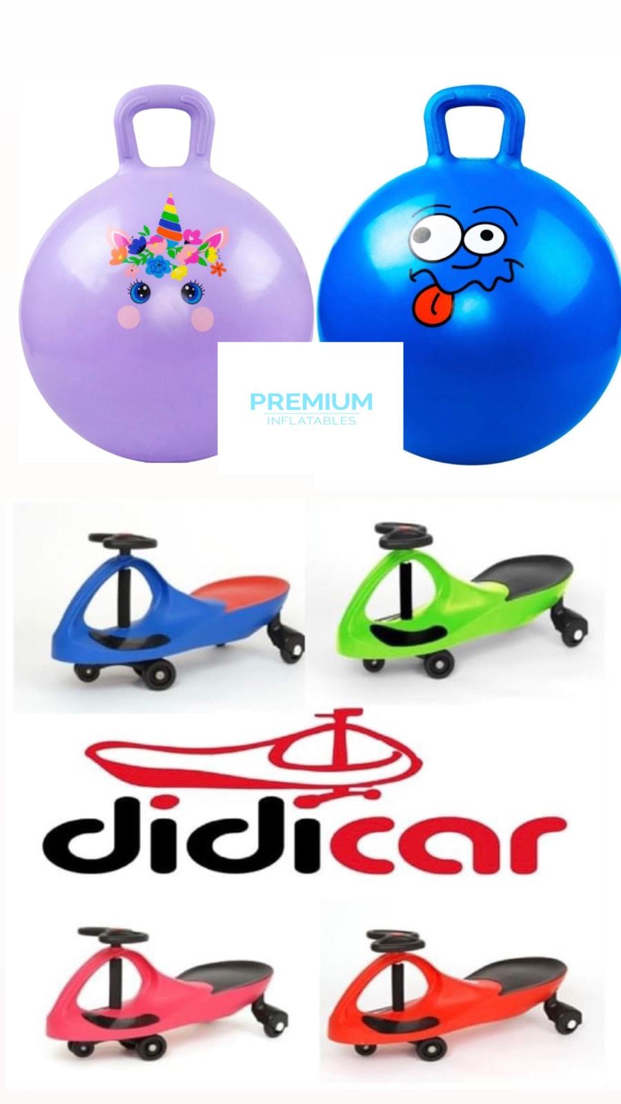 Why not add our package of Didi Cars and Hoppers to your party, they are Super Fun, Safe and easy to use the kids can just hop on and start wiggling! They are versatile as can be used inside and outside perfect addition to any event.