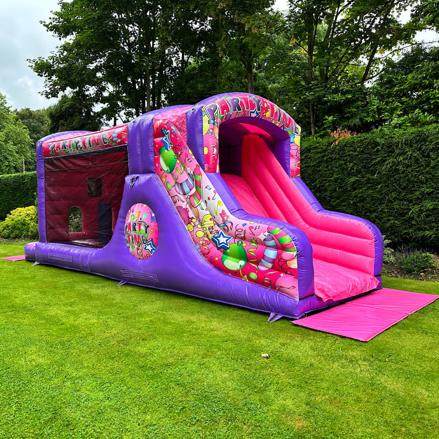 - Coordinates perfectly with our range of pink bouncy castles and slides