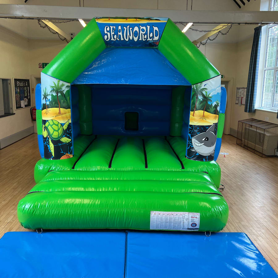 The Sea World Themed bouncy castle is a amazing addition to any birthday party or event, boasting the classic cartoon sea world artwork which is finished in a modern gloss to match the premium gloss finish on all our inflatables.