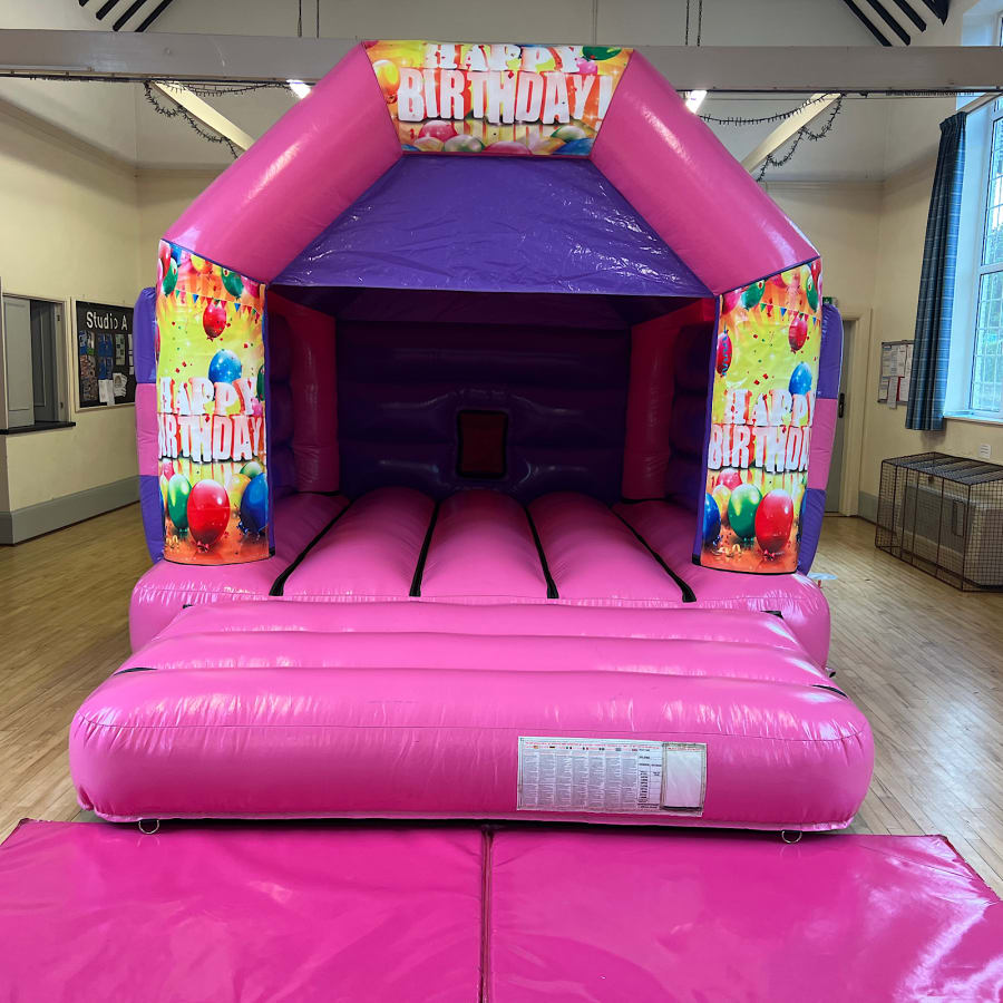 Book Your Happy Birthday Bouncy Castle - Pink and Purple Today