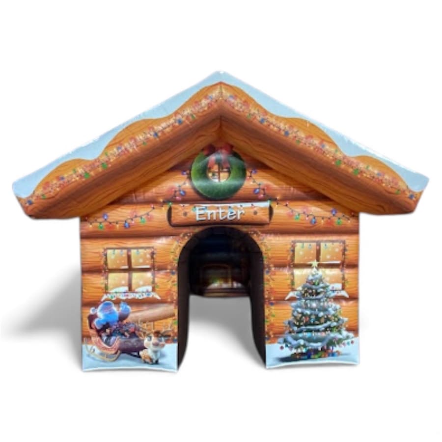 - Premium inflatable Santa’s Grotto with wooden cabin effect