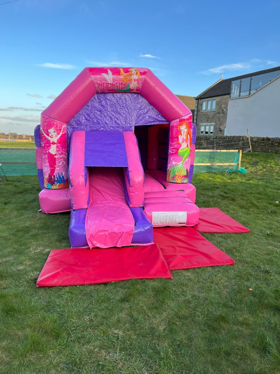 The Mermaids Themed bouncy castle with a slide is a amazing addition to any birthday party or event, boasting the classic cartoon mermaids artwork which is finished in a modern gloss to match the premium gloss finish on all our inflatables.