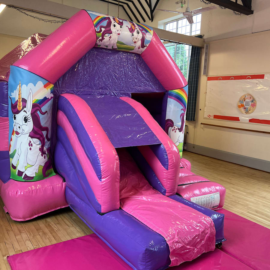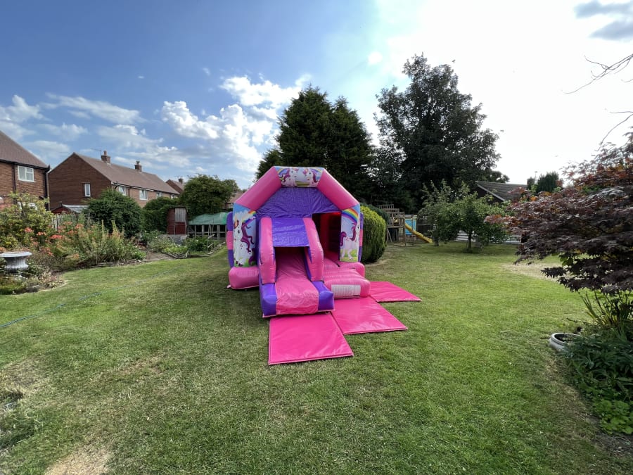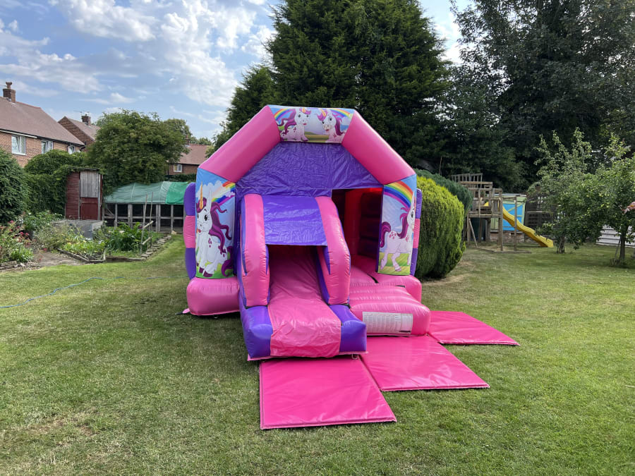 The Unicorn Themed bouncy castle with slide is Ideal for all your indoor and outdoor events and special occasions. This castle can be easily paired with ball pools, soft play, matching mat set up and even bigger super slides to make an incredible package catering for a variety of age groups.