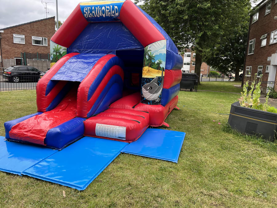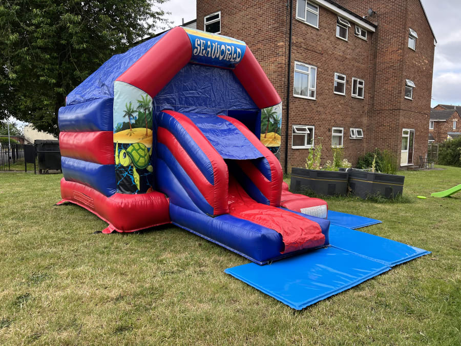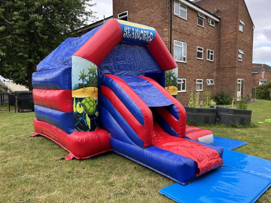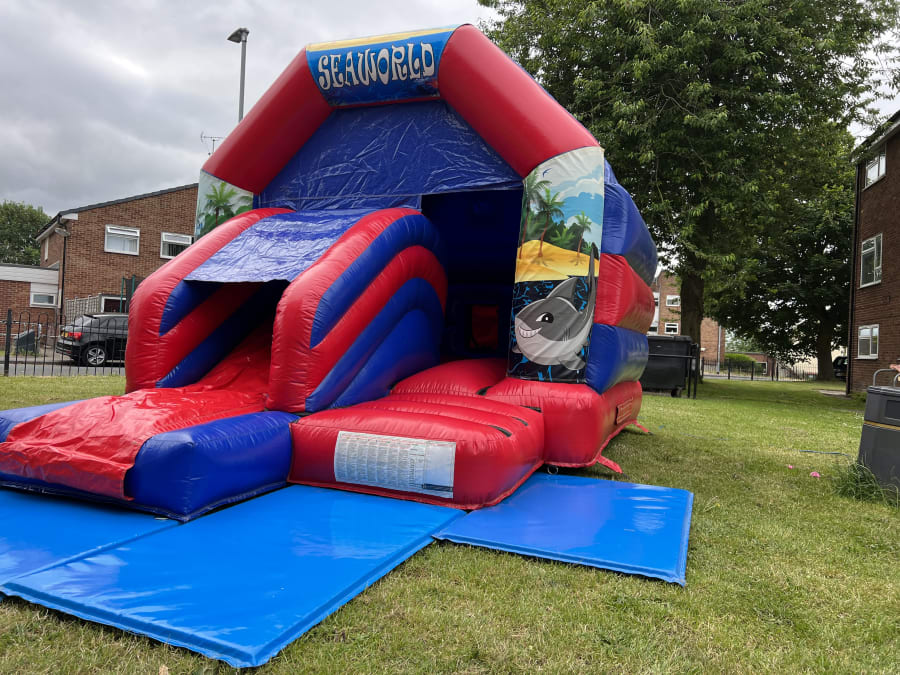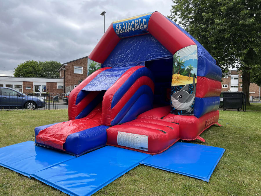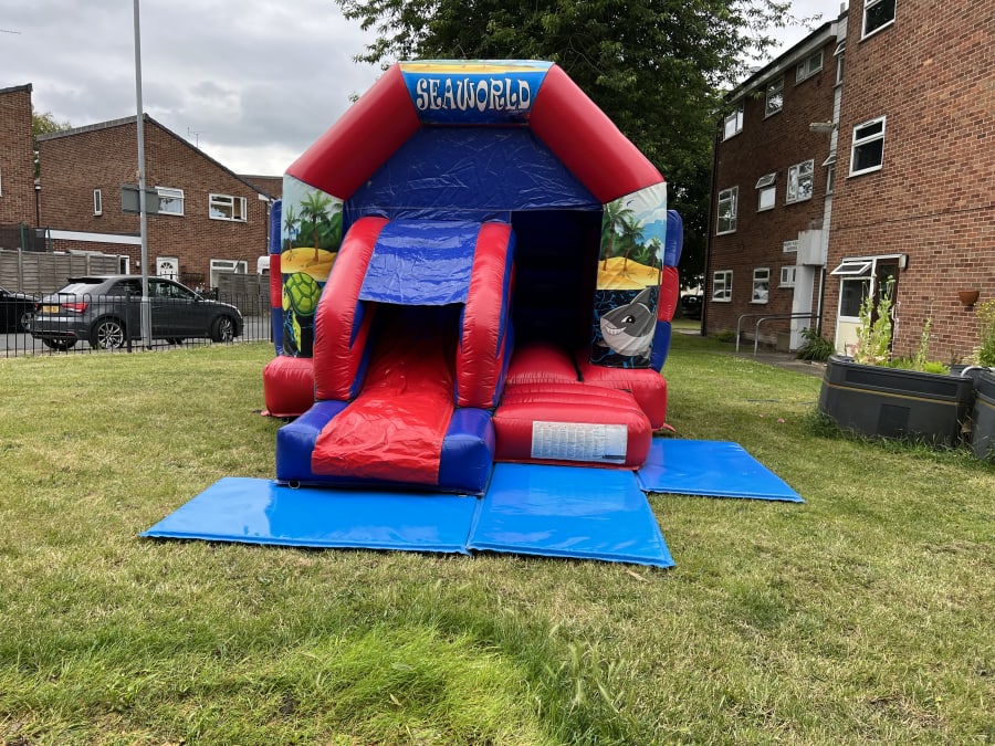 The Sea World Themed bouncy castle with slide is Ideal for all your indoor and outdoor events and special occasions. This castle can be easily paired with ball pools, soft play, matching mat set up and even bigger super slides to make an incredible package catering for a variety of age groups.