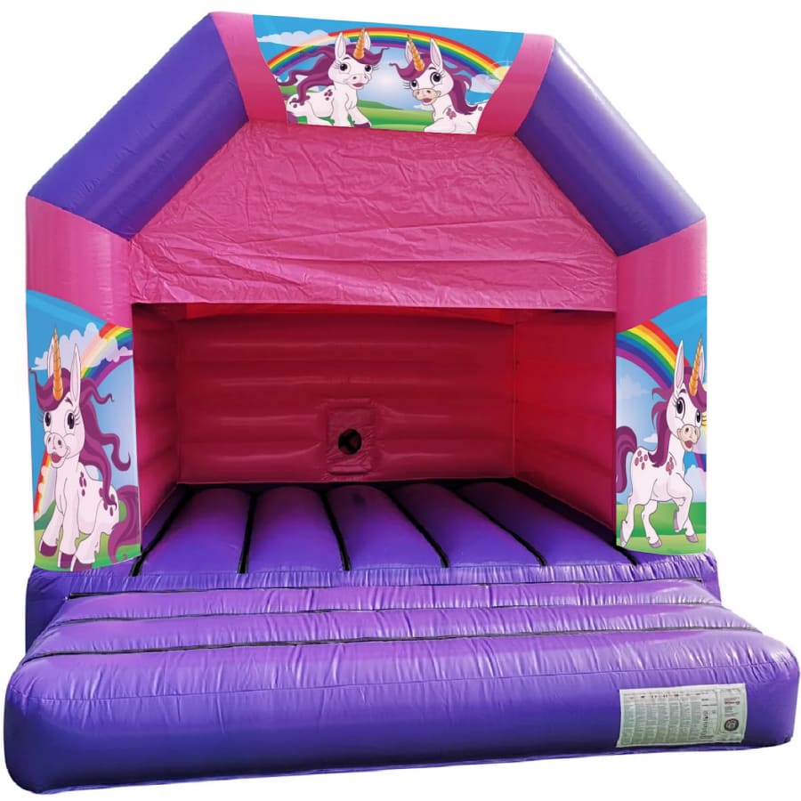 The Unicorns Themed bouncy castle is a amazing addition to any birthday party or event, boasting the classic cartoon unicorns artwork which is finished in a modern gloss to match the premium gloss finish on all our inflatables.