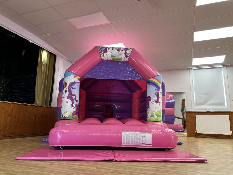 Book Your Unicorn Bouncy Castle Pink and Purple Today
