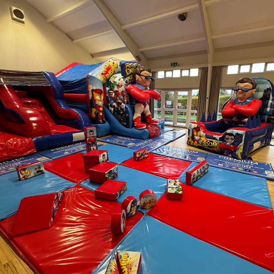 We have delivered and set up inflatables at this venue. To see a real example of what fits and how a clean indoor layout can work for mixed ages, view our recent Harrogate HG3 setup featuring our Superheroes theme — a proven indoor party layout for a children’s birthday party.