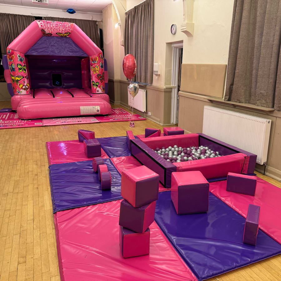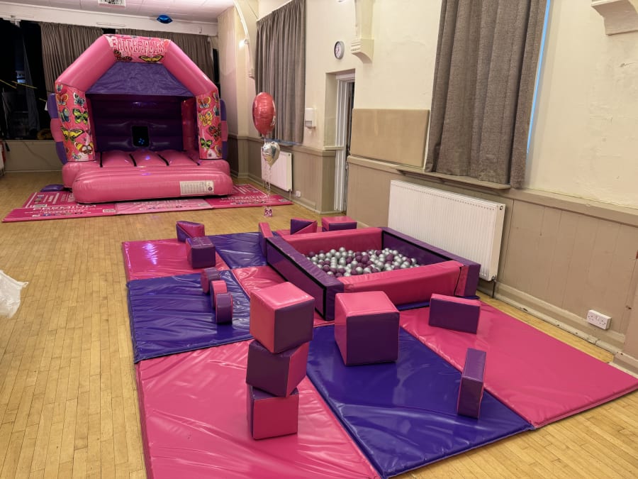 Below are examples of our Jungle Soft Play Package and Bouncy Castle set up inside St Paul’s Shadwell Village Hall.
