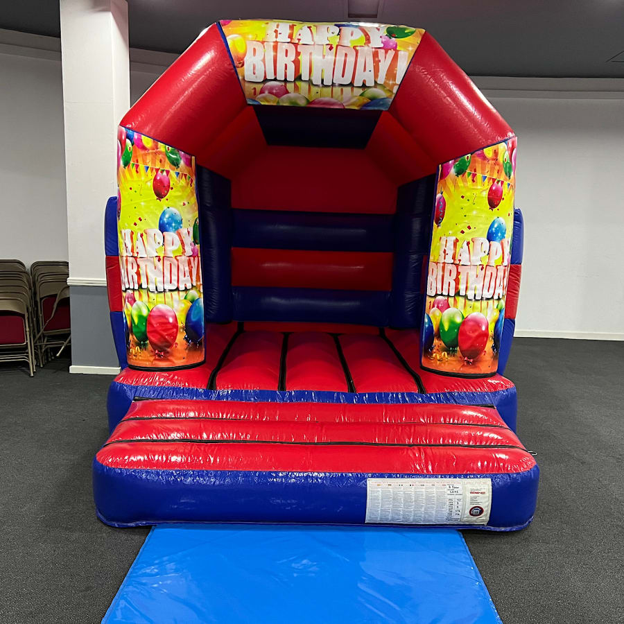 The Happy Birthday Themed bouncy castle is Ideal for all your indoor and outdoor events and special occasions. This castle can be easily paired with matching toddlers slides, ball pools, soft play and matching mat set up to make an incredible premium deluxe package.
