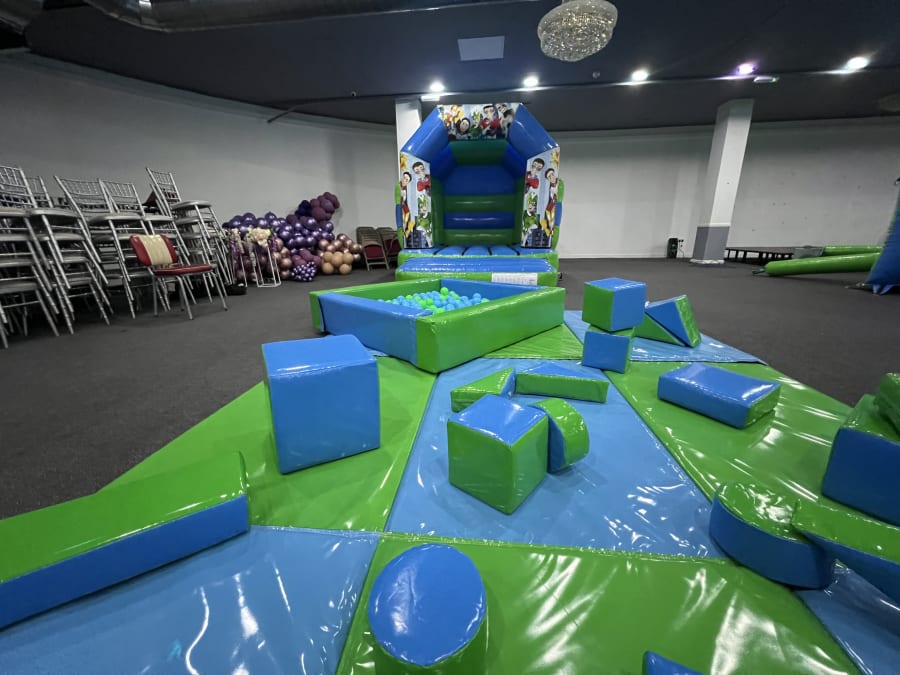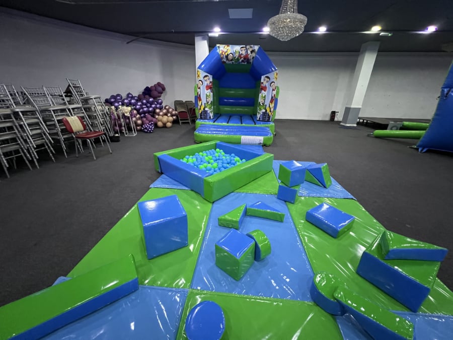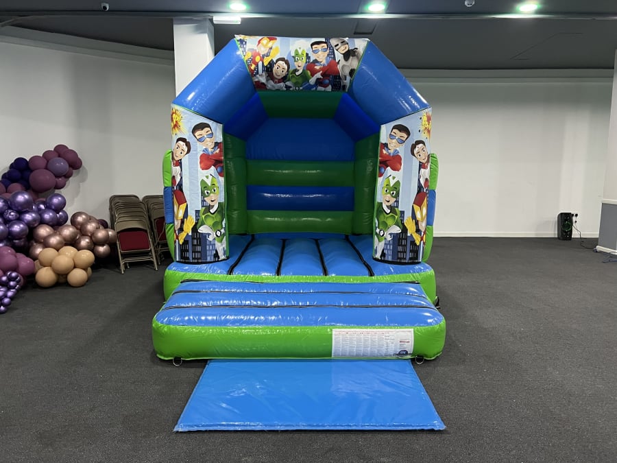 Superheroes Soft Play Bouncy Castle Juniors Package - Green / Light Blue