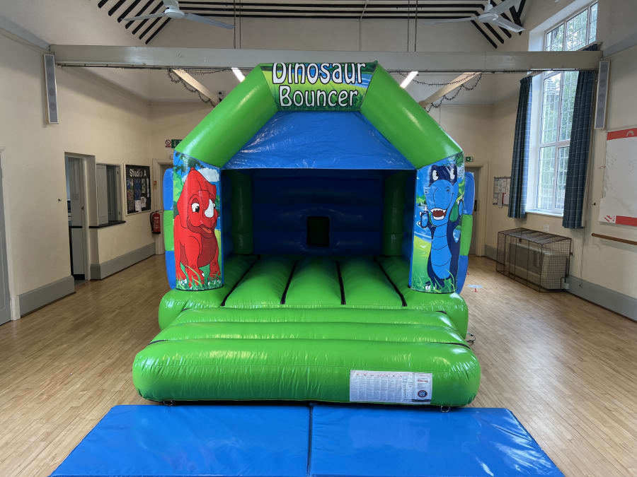 The Dinosaurs Themed bouncy castle 12x15ft is Ideal for all your indoor and outdoor events and special occasions. This castle is paired with a ball pool, 17 pieces of soft play and 9 matching mat set up to make an incredible package.