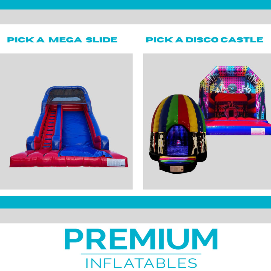 The Mega Slide and Any Disco Castle/Dome Package is an amazing addition to any birthday party or event, keeping all the children and adults entertained.