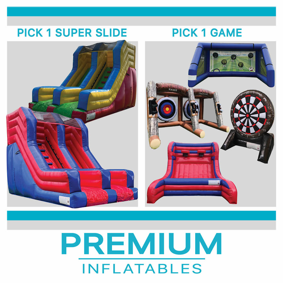 Transform your event from ordinary to extraordinary. Select your favorite slide and game combination, and let Premium Inflatables bring the magic to your doorstep!