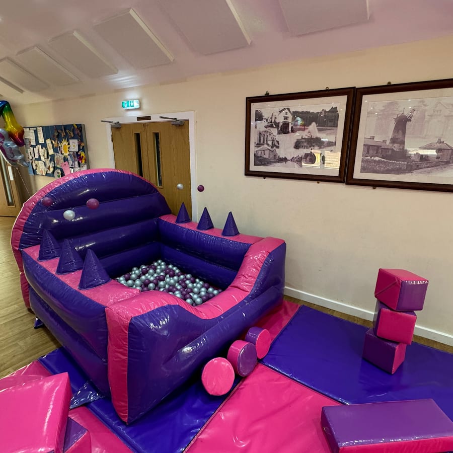 Yes – the bouncy castle fits in most indoor venues with a ceiling height of 9.5ft or more, and is suitable for flat outdoor grassed areas. Ball Pools are good for indoors and Outdoors. Soft Play can only be used in total dry weather outside.