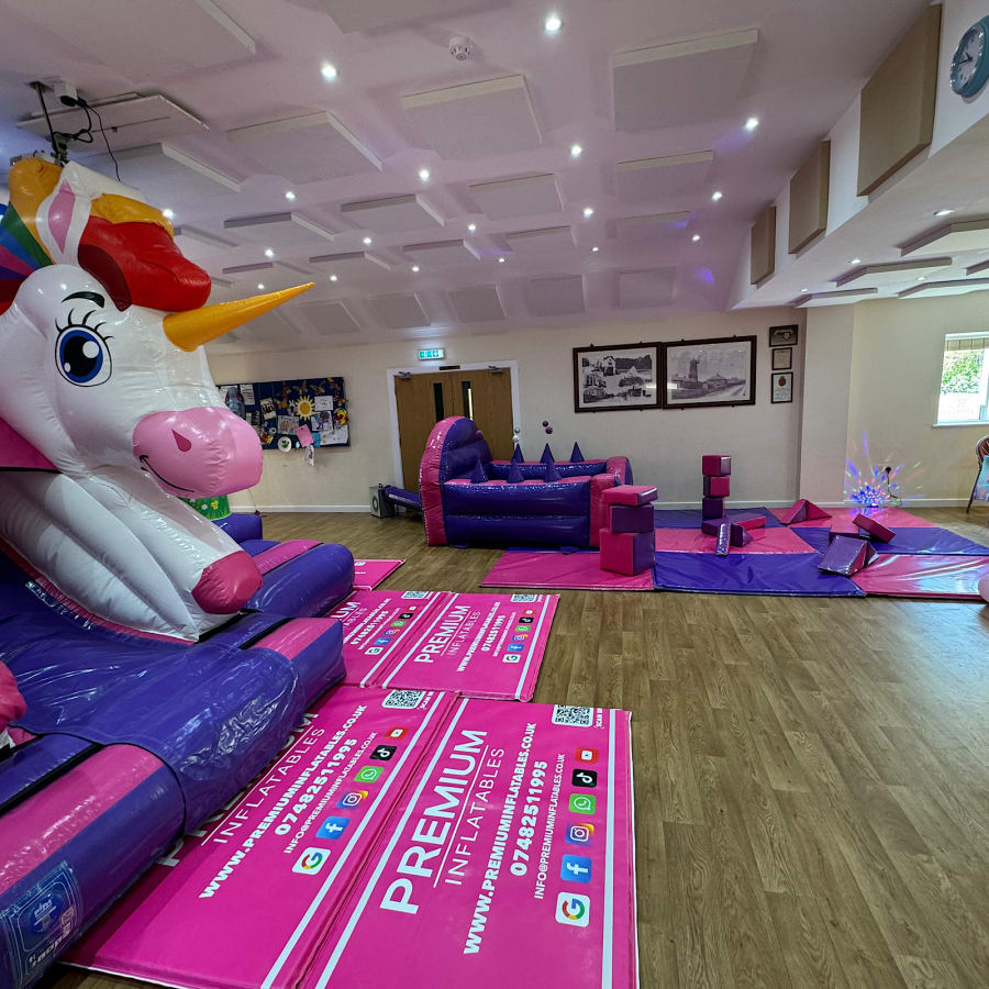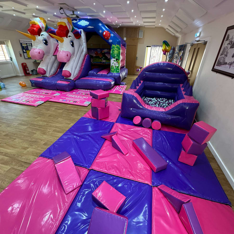 3D Unicorn Bounce and Slide Castle + Soft Play Party Package Hire Yorkshire