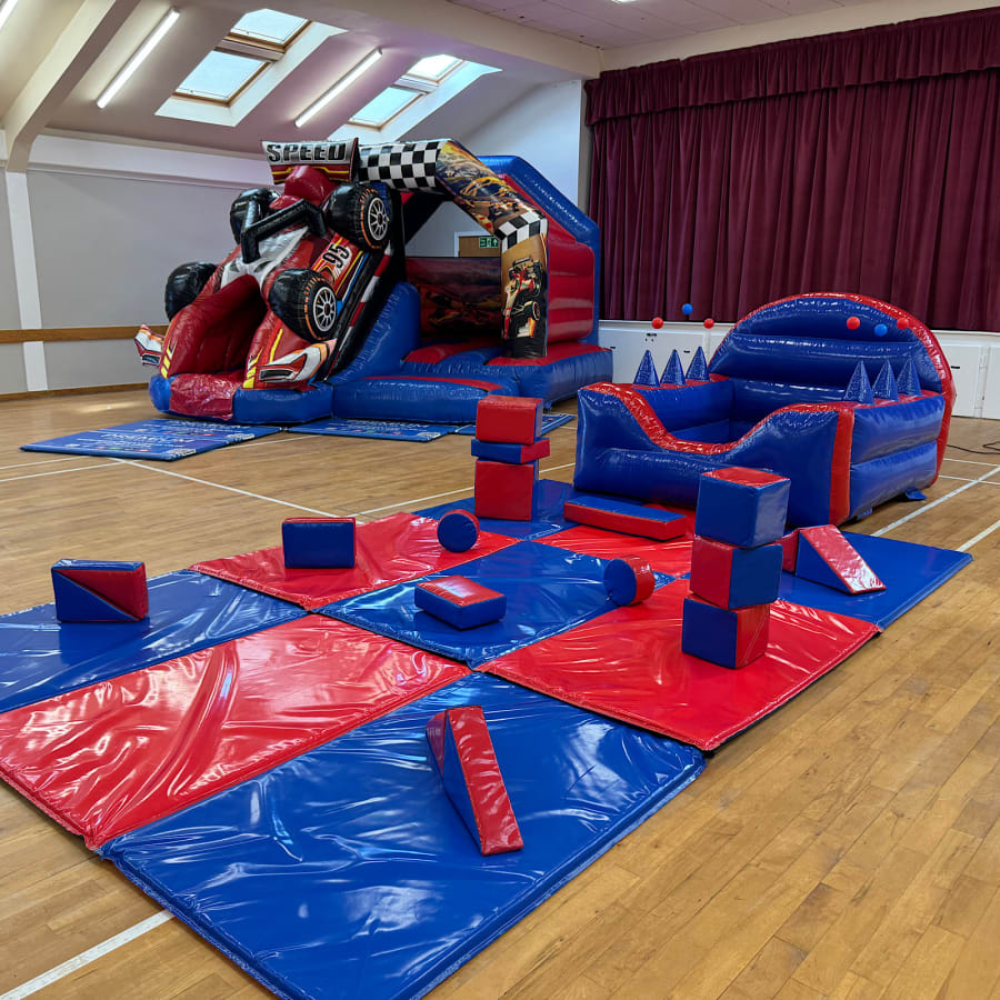 The centrepiece of this package is our 3D Race Car Bounce N’ Slide. Inspired by Formula One and Grand Prix racing, this inflatable features bold race-car styling and chequered-flag artwork, making it the ultimate choice for young motorsport fans.