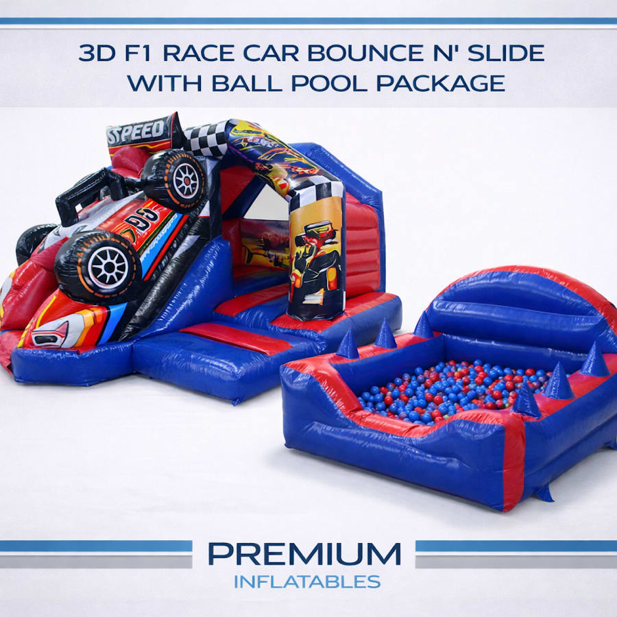 3D F1 Race Car Bouncy Castle With Ball Pool Package Hire Yorkshire