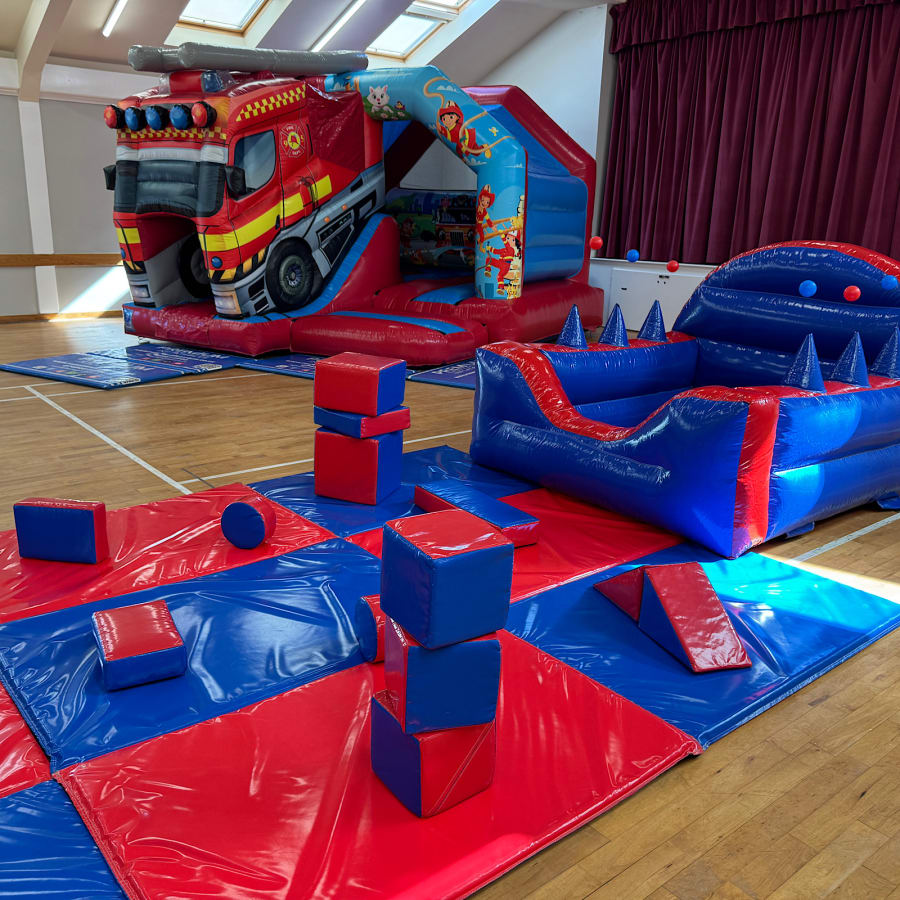 The package has been carefully designed to cater for mixed age groups, allowing toddlers to enjoy calm, sensory-based soft play and ball pool activities, while slightly older children enjoy energetic bouncing and sliding on the fire engine inflatable. Toddlers may also use the bouncy castle with supervision.