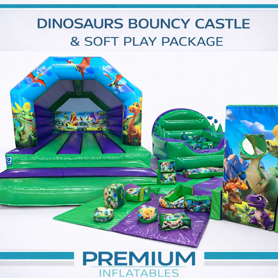 Premium Inflatables supply this Dinosaur Bouncy Castle with Soft Play Package for parents looking to create a fully inclusive party environment that caters perfectly for toddlers and younger children.