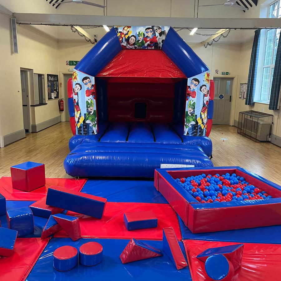 Superheroes Soft Play Bouncy Castle Package - Red / Blue