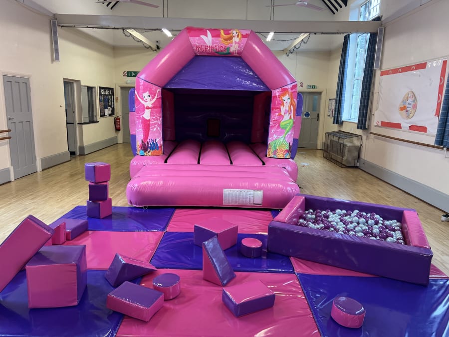 The Mermaids Themed 12x15ft Bouncy castle is ideal for all your indoor and outdoor events and special occasions. This castle is paired with a foam ball pool, 17 pieces of soft play and matching 9 Mega mat set up to make an incredible package. Your little ones will be able to play the day away in this Superb Package